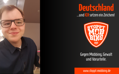 Es ist mir wichtig diese Aktion zu unterstützen weil es wichtig ist das Bewusstsein dafür zu schärfen, dass Mobbing kein Kavaliersdelikt ist. Es ist auch nicht cool, weil es immer darum geht, Schwächere zu peinigen. Dafür braucht es keinen Mut, sondern nur eine niedere Gesinnung. Mobbing zerstört im schlimmsten Fall sinnlos Leben. Wer Mobbt ist nicht stark. Er ist ein Opfer seiner selbst. (Alex)